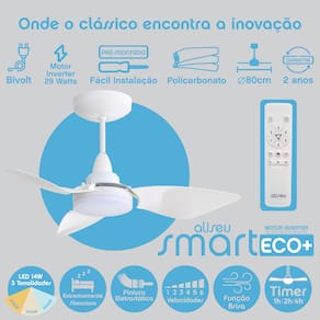 Com apenas80 cm de diâmetro, o VENTILADOR DE TETO ALISEU SMART ECO+ É IDEAL PARA QUALQUER AMBIENTE. Possui uma ótima ventilação, ALÉM DE NÃO GERAR RUÍDOS.