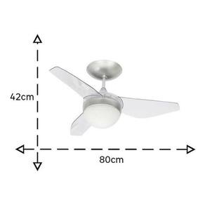 Tensão Elétrica 127V 110V Área de Ventilação Até 13 m Tipo de Acionamento do Ventilador Controle Remoto Vazão do Ar 1,86 m/s Benefícios 1. Este produto possui 80 cm de diâmetro. Ideal para espaços pequenos ou que possuam armários. 2. Ventila ambientes de até 20m. 3. Além de possuir controle de parede, possui controle remoto também, trazendo maior comodidade. Cor Cristal Tonalidade Incolor Altura 42 cm Diâmetro 80 cm Peso do Produto 3,7 Kg Altura da Haste 20 cm Quantidade de Pás 3 pás Material Metal e Plástico Cômodo Indicado Quartos e Salas Iluminação Com Lâmpada s com soquete E27 Acompanha Lâmpadas Não Quantidade de Lâmpadas Necessárias 2 lâmpada s Potência Máxima da Lâmpada Necessária 12 W Resistência à Maresia Sim Sentido de Giro da Hélice Exaustão e Ventilação Níveis de Velocidade 3 Velocidades Potência do Motor 140 W Produção Média de Energia 33,6 KWh/mês Rotação Máxima do Ventilador 440 rpm Material da Cúpula do Ventilador Vidro Modelo Nano Marca Inspire Conservação e Manutenção do Produto A limpeza deve ser realizada com o produto desligado da rede elétrica. Sugerimos utilizar apenas espanador de pó e/ou pano úmido com água ou sabão neutro de acordo com o tipo de material do produto. Nunca utilize soluções abrasivas. Aviso Antes de comprar o seu produto verifique as medidas, e o local onde pretende instalá-lo. Garantia do Fabricante 24 mes es Ean: 8720286318720