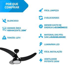 Ventilador de Teto LED 3 Pás Tron Búzios Max Preto 127V Estilo, Eficiência e Conforto para o Seu AmbienteO Ventilador de Teto Tron Búzios Max combina design moderno, funcionalidade e eficiência, sendo a escolha ideal para quem deseja conforto e sofisticação. Com 3 pás em um acabamento elegante na cor preta, ele garante uma ventilação poderosa e um toque de estilo para qualquer espaço.Principais Características:Iluminação LED Integrada: Equipado com tecnologia LED, oferece uma iluminação eficiente e econômica, ideal para ambientes internos.Design Moderno: O acabamento preto e as linhas contemporâneas tornam este ventilador um destaque em qualquer decoração.Desempenho Superior: As 3 pás foram projetadas para proporcionar ótima circulação de ar, garantindo frescor em qualquer estação.Motor Silencioso e Potente: Perfeito para criar um ambiente confortável, sem ruídos que incomodem.Compatível com 127V: Especificamente desenvolvido para redes elétricas de 127V, garantindo segurança e eficiência.Benefícios do Ventilador Tron Búzios Max:Conforto e Economia: Combina ventilação eficiente com iluminação LED de baixo consumo, contribuindo para reduzir os gastos com energia.Estilo Versátil: Sua cor preta e design moderno se adaptam facilmente a salas, quartos, escritórios ou varandas.Durabilidade Garantida: Produzido com materiais de alta qualidade, é resistente e confiável, garantindo longa vida útil.Especificações Técnicas:Marca: TronModelo: Búzios MaxTensão: 127VQuantidade de Pás: 3Iluminação: LED integradaCor: PretoInstalação: Ideal para ambientes internosAdicione estilo, funcionalidade e frescor ao seu espaço com o Ventilador de Teto LED 3 Pás Tron Búzios Max Preto 127V. Escolha a solução perfeita para o seu conforto e aproveite um ambiente sempre agradável e iluminado. Garanta já o seu!