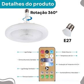 Lâmpada de ventilador de teto led e27 36w, solução completa para sua casa Descrição do anúncio: O ventilador de teto com led e controle remoto branco 37w é uma combinação perfeita de funcionalidade e elegância para o seu ambiente. Construído em abs durável, possui um design compacto de 23cm x 23cm, adaptando-se perfeitamente a qualquer ambiente. Compatível com voltagens de 110v e 220v, este ventilador de teto com perfil baixo se encaixa perfeitamente em qualquer espaço, da cozinha à sala de jantar. Equipado com um motor de cobre embutido, garante uma ventilação silenciosa e eficaz. A iluminação é personalizável, com opções de luz quente ou luz natural, controláveis via controle remoto ou de parede. Aprimore seu espaço com nosso ventilador de teto com led e controle remoto branco. Conteúdo da embalagem: 1 luminária led ajustável ventilador de teto 1 controle remoto com bateria 1 manual de instruções Caraterísticas: Pontência: 30 w ventilador: 4w voltagem: 110/220v Níveis de luz: 3 tipos luz branca fria, luz quente, luz natural Dimmável: sim Tipo de base: e27 Material do corpo: abs fácil instalação Multifuncional: design 2 em 1, não é apenas uma luz led mas também atua como ventilador Especificações: Marca: al Tipo de : controle remoto Fonte de alimentação: ac corrente alternada Número de luzes:1 unidade Fonte de luz: lâmpadas led Tamanho: 250mm de diâmetro, 110mm de altura Tensão: 86-265v Vida útil da luz:50.000horas Principais pergutas sobre o produto e respostas: O ventilador de teto é silencioso Sim, ele é equipado com um motor de cobre embutido que garante uma ventilação silenciosa e eficaz. A instalação é fácil Sim, a instalação é rápida e eficiente. Basta parafusar em qualquer suporte de lâmpada e27, sem necessidade de fiação adicional ou eletricista . Quais são as opções de iluminação A luminária led oferece três tipos de iluminação ajustáveis: luz branca fria, luz quente e luz natural. Qual é a voltagem do ventilador O ventilador é compatível com voltagens de 110v e 220v. O controle remoto está incluído Sim, o controle remoto está incluído na embalagem. Marca: Não Informado Ean: 7906036483103