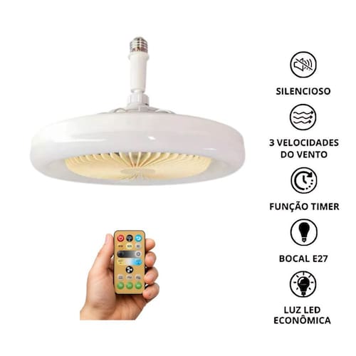 Ventilador De Teto Led E27 36W Branco Frio/Quente - Bivolt