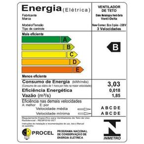 Voltagem 220v Motor com núcleo de 10mm , tamanho de 8 polegadas Acabamento branco, com 03 pás em aço Não possui Iluminação Acompanha chave reversora Classificação A de energia com consumo de 2,64kw/mes Peso Bruto 3 Pás: 3,095kg. Tamanho Da Caixa: 44,5 X 21,5 X 13,5. Ean: 7899121835065 Marca: Não Informado
