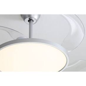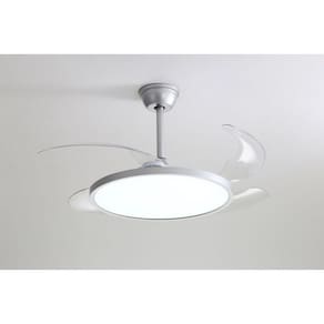 O ventilador de teto Britania Lotus branco e um modelo compacto quando recolhido (49 cm) e expande para 110 cm com as pas abertas. E bivolt, traz selo Procel, seis velocidades, controle remoto e iluminacao LED com tres cores. Ideal para quem busca eficiencia energetica, controle remoto e design flexivel, embora nao haja dados sobre peso, ruido ou funcao turbo.