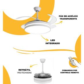 Ventilador de Teto Premium Retrátil com Lustre LED – Urban Light T&A-01 - Bivolt