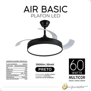Fluxo Luminoso: 3000lm Cor da peça: Preto Temp. Cor: 3000K - Branco Quente /4000K - Branco Neutro /6000K - Branco Frio IRC: 80 Abertura: 120 Potência: 60W Tensão: 100-240V Fator de Potência: 0.5 Frequência: 50/60 Hz Grau de Proteção: IP20 Área de ventilação: 20m RPM:230 Diâmetro ligado: 1060mm Número de pás: 4 Potência do ventilador: Máx 30W Incluso controle remoto Ean: 7898696185582