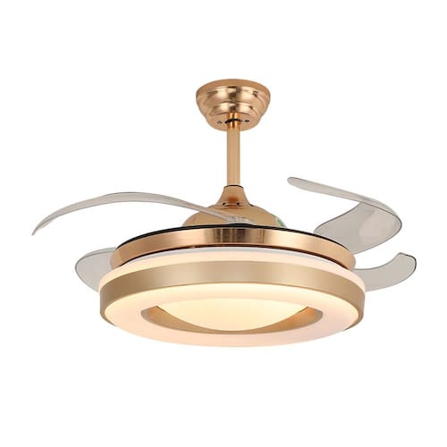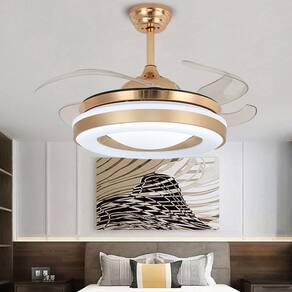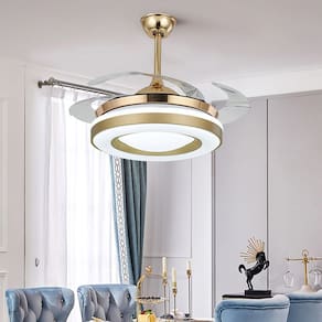 Amplamente utilizado em residências, saguões de hotéis, restaurantes, salas de exposições, oficinas, escritórios, salas de espera e outros ambientes.Descrição Técnica:Tensão de entrada: (110V/220V) BivoltFrequência: 50/60 HzTamanho do ventilador: 42 Polegadas / 106 cmPotência do Led: 36W*2 (mudança de três cores)Potência do motor: DC35W, conversão de frequênciaNúmero de Lâminas: 4 - ABS 4PCSVelocidade do ventilador: 6 níveis de velocidadeModo de controle: BluetoothMaterial: ABS + Ferro + AcrílicoModelo: CGE-T052Cor: DouradoGarantia: 12 meses