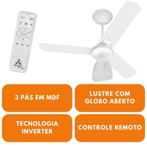 Ventilador De Teto Inverter Eficiente Com 3 Pás Globo Aberto - Venti-Delta