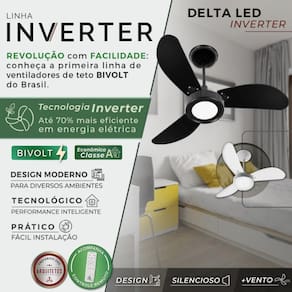 Ventilador De Teto Delta Led Inverter Eficiente Com 3 Pás Bivolt - Venti-Delta