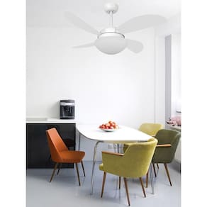 Ventilador de Teto Volare Branco Fosco VD42 Fly 4 Pás Branco O ventilador de teto é moderno e inovador, discreto na cor branco perfeito para a decoração da sua sala, sala de jantar, quarto ou escritório. Com 4 pás, o ventilador de teto é silencioso e potente para deixar os dias quentes mais agradáveis e frescos. O ventilador possui a iluminação central, 3 níveis de velocidade e 2 anos de garantia, o que demonstra sua alta tecnologia e inovação. Especificação técnica: Marca: Volare Modelo: VD42 FLY Quantidade de Pás: 4 Estrutura das Pás: Pás em MDF laqueada Cor das Pás: Branco Corpo: Branco Fosco Voltagem: 220v Acionamento: Controle de parede opcional controle remoto vendido separadamente Numero de Velocidades: 3 Potência do Motor: 127w Frequência: 60Hz RPM do Motor: 404 Área de Vazão: 2,17 m/s Selo Procel Economia de Energia : B Soquete de Lâmpada: 2 x E27 Luminária: Vidro Acetinado com Acabamento Fosco Ajuste de altura: Não Silencioso: Sim Função Exaustão e Ventilação: Sim Dimensões do ventilador: 48cm de altura x 105 de diâmetro Conteúdo da Embalagem: 1 Ventilador de teto 1 Controle de parede 1 Manual de instalação Observação: contrate um profissional para instalação.