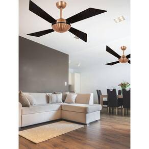 Ventilador de Teto Volare Cobre Tech Office 4 Pás Tabaco O ventilador de teto da marca Volare é moderno e inovador, com alta tecnologia e qualidade, possui os detalhes em cobre e as 4 pás em tabaco, o que agrega estilo e charme a decoração da sua casa, sendo rústico ou clássico. O ventilador de teto é ideal para quarto, sala, sala de jantar e escritório devido ser super silencioso, além do design exclusivo e a super potência. Especificação técnica: Marca: Volare Modelo: TECH OFFICE Quantidade de Pás: 4 Estrutura das Pás: Pás em MDF laqueada Cor das Pás: Tabaco Corpo: Cobre Voltagem: 220v Acionamento: Controle de parede opcional controle remoto vendido separadamente Numero de Velocidades: 3 Potência do Motor: 127w frequência: 60Hz RPM do Motor: 404 Área de Vazão: 2,17 m/s Selo Procel Economia de Energia : B Soquete de Lâmpada: Não Possui Não possui luminária Ajuste de altura: Não Silencioso: Sim Função Exaustão e Ventilação: Sim Dimensões do ventilador: 43cm de altura x 121 de diâmetro Conteúdo da Embalagem: 1 Ventilador de teto 1 Controle de parede 1 Manual de instalação Observação: contrate um profissional para instalação. Confira nossa linha completa de ventiladores para deixar o ambiente da sua casa ou escritório mais fresco e sofisticado.