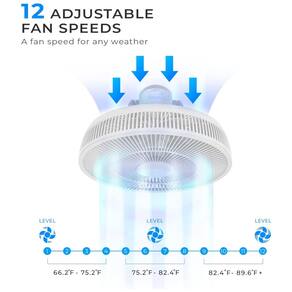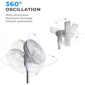 Com 10 modos de ventilação, incluindo Turbo, Vento 3D e Rotação vertical, este ventilador é projetado para atender a diferentes necessidades de resfriamento. Além disso, é 100% ajustável, permitindo rotação de 360° e ajuste de altura para uso no chão ou em superfícies.