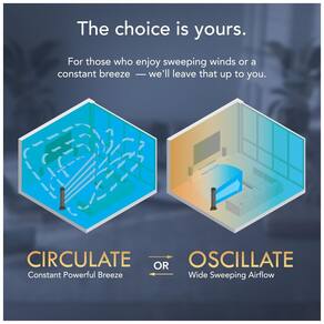 O controle digital de toque permite selecionar entre 5 configurações de velocidade, enquanto o controle remoto RF omnidirecional oferece comodidade adicional, permitindo ajustar o ventilador de qualquer ângulo.