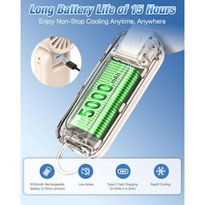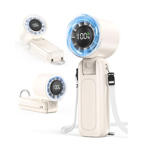 Ventilador turbo portátil portátil 4 em 1, miniventilador dobrável de 180° de 6 velocidades (1-100), bateria recarregável de 5000mAh operada por até 15 horas de trabalho, display LED, refrigeração pessoal para viagens, interiores e exteriores, bege