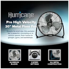 Marca: Hurricane Cor: Ventilador de Piso 20" Pro Heavy Duty Design do Ventilador: Ventilador de Piso Fonte de Energia: Elétrico com fio Estilo: 20" Pro Heavy Duty Dimensões do Produto: 38 cm (D) x 61 cm (L) x 61 cm (A) Tipo de Ambiente: Sala de Estar Característica Especial: Alta velocidade, inclinação ajustável Usos Recomendados: Circulação de ar Potência: 145 watts Peso: 6,4 kg
