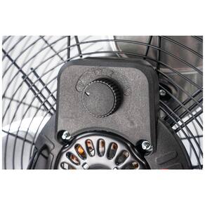 Equipado com três níveis de velocidade, o ventilador possibilita controle preciso do fluxo de ar, complementado pela cabeça com inclinação ajustável em 360°, que permite direcionar o vento conforme a necessidade. O design heavy duty utiliza estrutura metálica e pás de alumínio revestidas, assegurando durabilidade e resistência mesmo em uso contínuo.