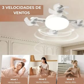 Use o controle remoto para ajustar iluminação e vento de forma fácil e rápida, ou conte com o controle tradicional se preferir.