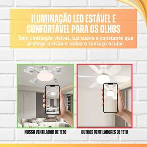Use o controle remoto para ajustar iluminação e vento de forma fácil e rápida, ou conte com o controle tradicional se preferir.