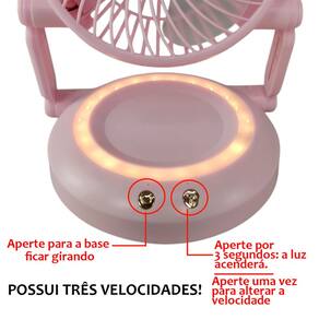 Ventilador possui led em sua base, que ilumina o ambiente e facilita para fazer maquiagens, leituras e outros.