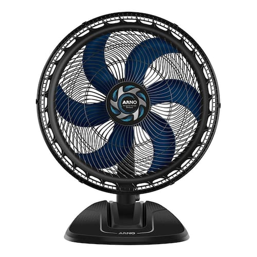 Refresque seus ambientes com o Ventilador de Mesa Arno VB50, uma combinacao perfeita de estilo e funcionalidade. Seu design moderno em preto e azul se integra harmoniosamente a qualquer decoracao, enquanto sua estrutura de 50cm garante ampla cobertura de vento. As linhas clean e a silhueta robusta transmitem a qualidade e a durabilidade que voce espera de um produto Arno.
