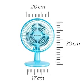 Características: Marca: Ventimais Linha: Mini Modelo: VMTV20CAP01 Cor: Azul/Prata Frequência: 60 Hz Nível de ruído: 25 dB Fonte de alimentação: Energia elétrica Possui inclinação vertical Tipo de ventilador: Mesa/Parede Quantidade de velocidades: 2 Cor da estrutura: Azul Cor das pás: Prata Material das pás: Plástico Quantidade de pás: 3 Material da grade: Plástico Diâmetro: 20 cm Altura : 23 cm Profundidade : 22 cm Largura : 18 cm Peso: 770 g
