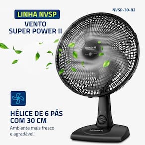 Especificações Técnicas: Marca: Mondial Modelo: NVSP-30-B2 Cor: Preto Potência: 60W Voltagem: 127V Número de pás: 6 Tipo: Ventilador de mesa