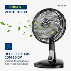 VENTILADOR DE 30CM + 6 PAS: O design aerodinamico proporciona forte ventilacao e melhor distribuicao de ar. O resultado e um ambiente mais fresco e agradavel; MAIS SILENCIO E CONFORTO: O sistema de ventilacao da Mondial apresenta baixo nivel de ruido, assegurando o silencio necessario para uma excelente noite de sono; MAIOR DISTRIBUICAO DE AR: O Sistema Oscilante Continuo amplia o raio de alcance do vento no ambiente; INCLINACAO VERTICAL REGULAVEL: Para um direcionamento ideal do fluxo do ar; CONTROLE DE VELOCIDADE: As 3 opcoes de velocidade permitem adequar o vento a sua necessidade; FACILIDADE NA LIMPEZA: A grade desmontavel oferece mais facilidade na limpeza das helices.