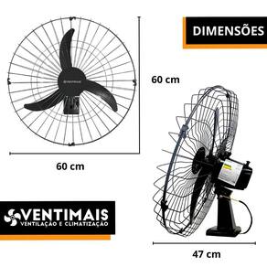 Especificações Técnicas: - Até 1500 RPM - Ajuste de inclinação - Vazão de 1,05 m³/s - Marca: Ventimais - Modelo: VOP60L01 - Potência: 147W - Voltagem: 220V