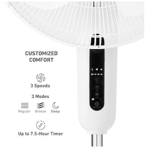 Este modelo conta com um temporizador de desligamento automático de até 7,5 horas, permitindo programar o ventilador para desligar após o período desejado. (CFM) de fluxo de ar e uma alta velocidade de 4,98 metros por segundo, ele é ideal para salas de estar, cozinhas, quartos, academias e escritórios domésticos.