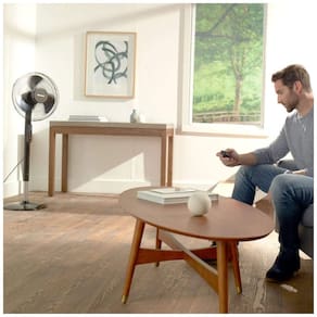 RESFRIAMENTO SILENCIOSO: Este ventilador oscilante possui 5 configurações de potência e som, incluindo uma opção ultra silenciosa para o “sono”. Conta com cabeça e altura ajustáveis, controle remoto e temporizador de desligamento automático.