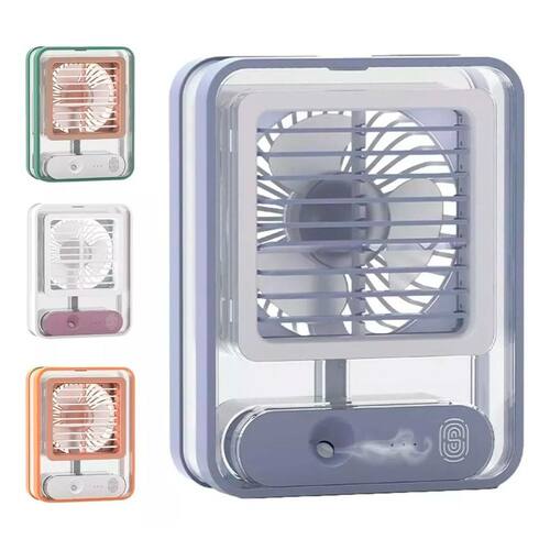 Ventilador Pequeno Silencioso Umidificador Luz Led Ar Fesco Com um design moderno e compacto, o Mini Ventilador Portátil é perfeito para quem está em movimento, além de ser muito silencioso. Ideal para uma noite de sono repousante ou de trabalho ou estudo ininterrupto. Melhor ainda, seu ventilador silencioso não será uma distração, garantindo que você permaneça focado, tranquilo e produtivo. Carregamento USB, e com três níveis de velocidade, este ventilador ajuda a resfriar, umidificar e purificar para obter ar fresco e limpo a qualquer hora, em qualquer lugar. Recomenda-se o uso de água gelada ou cubos de gelo para um melhor efeito de resfriamento. O ventilador possui uma seleção livre de direção do vento. O ângulo pode ser ajustado livremente para atender a diferentes posições e aproveitar a brisa. Além de conter uma luz interna, de uso opcional, que deixa o ambiente muito agradável.