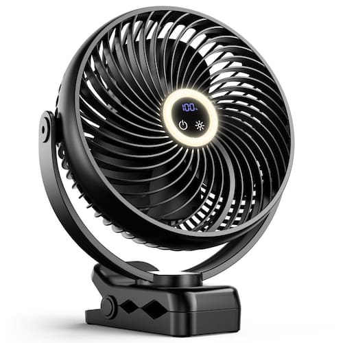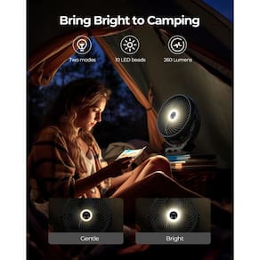 - Duração de 24 horas: é um ventilador de acampamento recarregável de longa duração 24H que pode trazer o melhor fluxo de ar fresco e refrescante. Com a função de carregamento rápido, leva apenas 4,5h para carregar totalmente. (O ventilador dura 17 horas quando o LED acende).