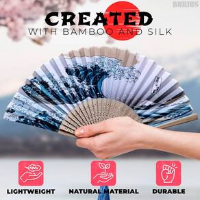 - Belo estilo retrô: nosso ventilador portátil pessoal é feito de giros de bambu de primeira classe. Nosso ventilador dobrável portátil tem estampa ondulada kanagawa, que é muito bonita e moderna e fica muito linda em suas mãos.