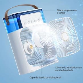 01 - Névoas Refrescantes: Este mini ventilador não é apenas um ventilador comum. Com sua exclusiva tecnologia de névoas de fumaça, proporciona um frescor extra sempre que necessário. Basta adicionar água e gelo ao reservatório integrado para desfrutar de um ar refrescante e revitalizante.