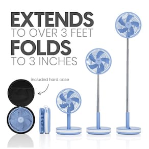 Um ventilador de viagem dobrável de 4 velocidades que é recarregável, sem fio e um ventilador sem fio portátil extensível. Evite com segurança que seu laptop e seu rosto derretam com o calor. Perfeito para uso doméstico, na cozinha e no escritório. Incrível ventilador permanente para aventuras e viagens. Você pode usá-lo para churrascos, piqueniques e atividades ao ar livre. Super fácil de viajar e guardar em qualquer armário, carro ou espaço pequeno. O ventilador é muito conveniente para quem tem estilos de vida ativos e ambientes movimentados. Manter-se fresco nunca foi tão fácil. Ele vem com um estojo de viagem, feito com um material sólido de EVA 600D impermeabilizado. A parte interna é projetada com veludo e um bolso de malha para guardar o cabo de carregamento. Outros ventiladores sem fio sem fio ficam sem bateria em apenas algumas horas. A bateria do ventilador Venty dura até 48 horas por carga. Ele tem um controle remoto magnético sem fio para que você possa controlar o Venty de qualquer lugar da sala. Experimente o ventilador oscilante recarregável de 4 velocidades operado por bateria. Ele oscila 120°, gira 180° e pesa apenas 2,6 libras. Use-o em sua viagem. Você pode desfrutar de até 48 horas de ação do ventilador de resfriamento com cada carga. A bateria de 16.000 mAh também permite carregar seu telefone e outros dispositivos 6 vezes. Desfrute do ar fresco soprando em uma praia quente, em um trem lotado e, claro, no trabalho. O ventilador dobrável vem com um estojo de viagem leve e resistente à água. As dimensões de 3,5” x 8” significam que você pode carregar um novo companheiro de viagem onde quiser. Dê ao seu quarto um ambiente rico e colorido com as luzes brancas quentes de 3 níveis. Com ajustes remotos sem fio removíveis, velocidade, oscilação e luzes ligadas/desligadas.