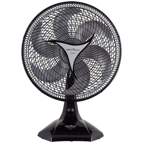 Ventilador super 40 130w 127v 6pás britanian - ventilador super 40 130w 127v 6pás britaniaDescrição: Características:- 3 velocidades; - hélice de 6 pás; - grade que obedece às normas de segurança contato com partes móveis ; - oscilação horizontal automática com novo sistema de acionamento botão integrado à carcaça ; - novo sistema de articulação para ajuste da inclinação vertical sem borboleta ; - porta-fio; - novo sistema de travamento entre grade frontal e traseira; - remoção da grade frontal somente com uso de ferramenta, conforme normas de segurança; - motor com fusível térmico de segurança; - alça na grade traseira para transportar o aparelho. Características técnicas:- potência: 130w - tensão: 127v- consumo: 0,13kwh- peso: 2,578kg- altura: 55,00cm- largura: 49,50 cm- profundidade: 14,50cm- cor: preto- modelo: super 40- garantia de fábrica: 1 ano- marca: britânia- código comercial: 033011151- ean-13 : 7899963905209