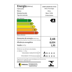 Com 90 cm de diâmetro oferece excelente ventilação e possui Selo PROCEL Triplo A no Inmetro.