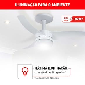 O Ventilador de Teto Arno Ultimate oferece excelente iluminação, com até duas lâmpadas de 14 cm cada. Com um alcance de vento de até 25m2, possui uma potência de 150 Watts e é simples de instalar, requerendo apenas 2 fios. O controle remoto incluído oferece 6 velocidades e 4 funções especiais: modo Dormir, proporcionando um vento leve e ultra silencioso para uma noite de sono tranquila; modo Brisa, que simula o frescor natural do vento; modo Exaustor, ideal para circular o ar de forma mais ampla ao girar no sentido anti-horário, deixando o ambiente mais arejado; e um Timer programável de 1 a 8 horas para maior comodidade. Além disso, possui botões para desativar a função Timer e controlar o acendimento da luz. Seu design foi aprovado em pesquisas nacionais e foi atribuído com o Prêmio Selo Procel A. Lâmpadas não inclusas.