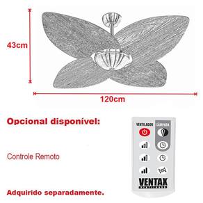 Os ventiladores ventax são desenvolvidos com tecnologia de ponta e design exclusivo. Modelo moderno, que facilita a integração a todos os estilos de decoração. Com pás em mdf laqueada com maior resistência e eficiência e motor com protetor térmico que desliga automaticamente em caso de superaquecimento, garantindo mais segurança. Além de uma excelente distribuição do ar por meio de motores robustos, velozes, silenciosos e com garantia de 1 ano. Tudo para que você tenha pleno conforto em seus ambientes. Ideal para ambientes de 25 a 30 m, considerar o pé direito até 3 metros.