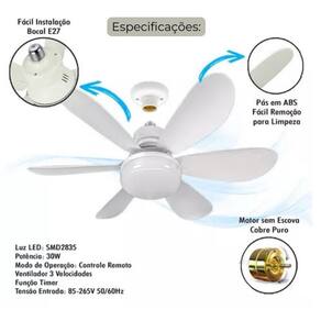 Ventilador de Teto com Lâmpada LED Silenciosa Bivolt Controle Remoto