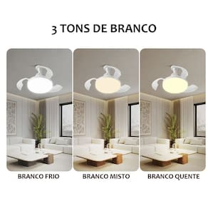 O ventilador possui 3 tons de brancos, ajustáveis facilmente pelo controle.