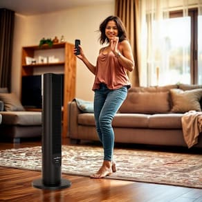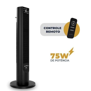O Ventilador Torre Britânia BVT90A une potência de 75W, design moderno e tecnologia inteligente para deixar seus ambientes sempre frescos e agradáveis. Seu painel touch com display digital facilita o uso, e o controle remoto traz ainda mais comodidade no dia a dia.
