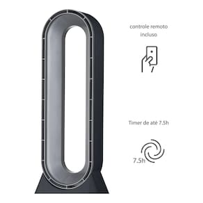 Experimente um novo nivel de conforto com sua tecnologia inovadora "bladeless" (sem pas), que proporciona um fluxo de ar continuo e uniforme, eliminando o ruido incomodo dos ventiladores tradicionais. Com 90cm de altura, ele oferece alcance ideal para circular o ar em toda a sala. Ajuste a velocidade e as funcoes com facilidade para criar o clima perfeito em sua casa ou escritorio.