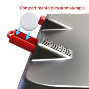 Além disso, possui fixação com fitas dupla face e compartimento para pastilha aromatizadora. Além de refrescar, perfuma o ambiente.