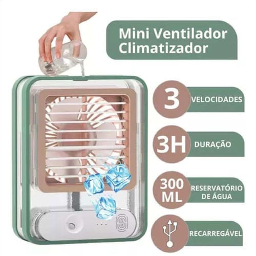 Aproveite a praticidade e eficiência do Mini Ventilador Umidificador de Ar com Bateria Recarregável e garanta um ambiente mais fresco e agradável em qualquer lugar. Ean: 7895067536004