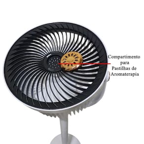 O ventilador possui espaço para pastilha de aromaterapia, perfeito para deixar o ambiente mais aconchegante.