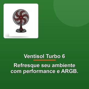 Aquelecte calor? Sofre com el calor? Apresentamos o Ventilador de Mesa Ventisol Turbo 6, seu aliado para um ambiente fresco e agradável. Com sua potente tecnologia turbo, este ventilador de 40cm de diâmetro entrega ar fresco com máxima eficiência, graças à sua hélice de 6 pás desenvolvida com aerodinâmica inovadora. Prepare-se para se refrescar com o Ventisol Turbo 6, que oferece performance incomparável e um nível sonoro surpreendentemente baixo.