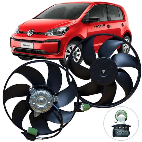 Eletroventilador sem defletor Conector de 3 pinos Com resistência Com ar condicionado Hélice de 7 pás c/343mm Voltagem de 12v Sentido horário Motor c/102mm C/3 furos p/fixação c/rosca
