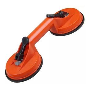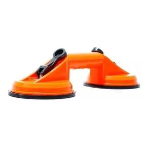 Ventosa dupla para transporte de lâminas de vidro, mármore e peças planas lisas. Ideal para movimentar itens pesados que possuam superfícies lisas e não porosas e que não tenho local adequado para apoio, tais quais geladeiras, máquina de lavar, fogões e semelhantes. Especificação: Diâmetro da ventosa: 118 mm. Diâmetro da empunhadura: 3,5 cm. Vão livre entre as ventosas: 8,5 cm. Confeccionada em borracha e plástico ABS com sistema de sucção. Capacidade de carga de até 70 kg. Comprimento: 32 cm. Largura 12 cm. Altura 8 cm. Peso: 515 g. O valor anunciado é para 1 ventosa. Ean: 7899206179435