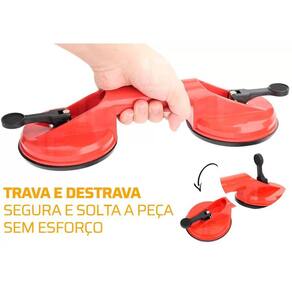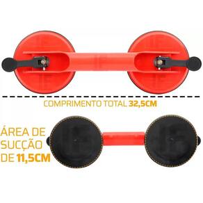 Ventosa Dupla para Vidros, Metais, Mármores, Espelhos Até 80kg Ventosa Dupla Profissional na cor laranja A Ventosa Dupla 118mm 80 kilos é ideal para carregar produtos pesados. Indicada para transporte de vidros, mármores, granitos, chapas, entre outros - ESPECIFICAÇÕES: - Ventosa com 2 pontas - Diâmetro da ventosa: 118mm - Ventosa em borracha com sistema de sucção - Suporte e alça em plástico ABS de alta resistência - Capacidade: 80kg - Transporta vidros, mármores, granitos, chapas, entre outros -diâmetro: 120mm -comprimento: 320mm Marca: Quickstore