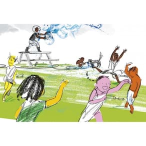 Em uma edição caprichada, a premiada artista Suzy Lee reúne diversas técnicas artísticas para narrar de maneira inigualável os sons, as cores, os cheiros e a atmosfera do verão. Sol quente, alegria, brincadeiras, tempestades repentinas e um arco-íris que colore o céu… Um dia de verão pode ser inesquecível para as crianças! E também para a orquestra que toca As quatro estações , de Vivaldi, retratada neste livro. Em uma edição de luxo com acabamento em capa dura, sobrecapa que se transforma em pôster e impressão em dois tipos de papel diferentes (um brilhante e um fosco), a ganhadora do prêmio Hans Christian Andersen de 2022, considerado o prêmio Nobel da literatura infantil, se utiliza da escrita, de linhas e de diferentes planos e cores para interpretar um dia de calor repleto de brincadeiras, música, diversão e, claro, das reviravoltas provocadas pelas chuvas de verão. Inspirada por “Verão”, de As quatro estações , do compositor Vivaldi, Suzy Lee cria um livro ilustrado divido em três atos, seguindo o fluxo da peça musical. Cada capítulo possui uma técnica de ilustração e pintura diferentes, e os leitores são convidados a se acomodarem nos assentos reservados para ver e ouvir a orquestra — um QR Code ao final do livro possibilita acesso à gravação de “Verão” por uma orquestra. O resultado é um livro-presente perfeito para leitores de todas as idades, especialmente os apreciadores de arte, música clássica, e da leveza dos dias livres durante a estação mais quente do ano. * Livro ganhador do prêmio Bolonha Ragazzi, da Feira Internacional do Livro Infantojuvenil de Bolonha, destacando-se como um dos melhores lançamentos de 2022. Indicado para leitores a partir de 4 anos.